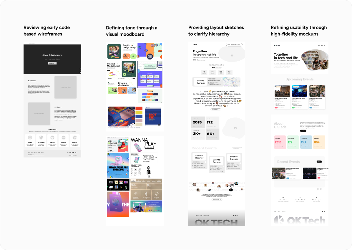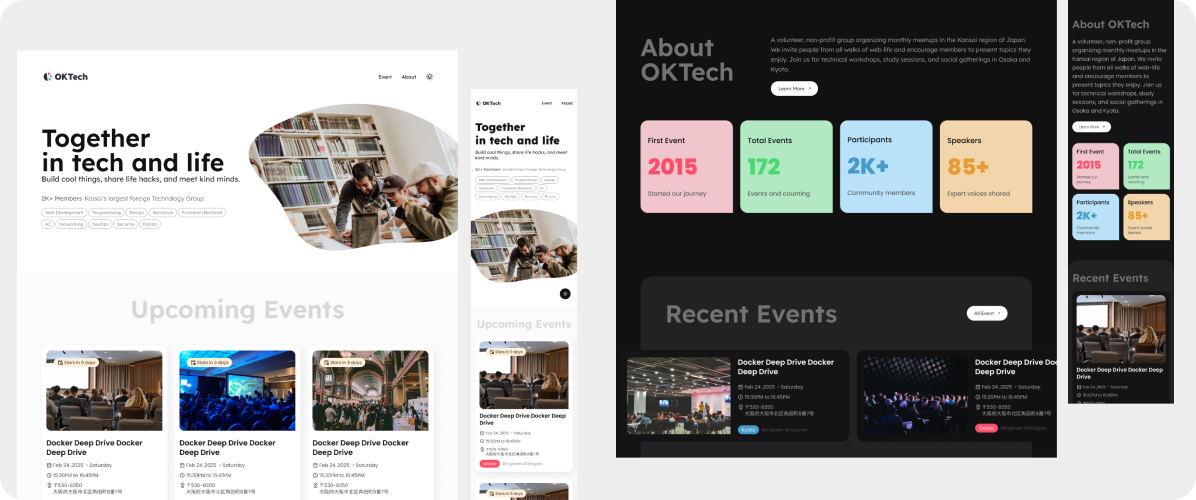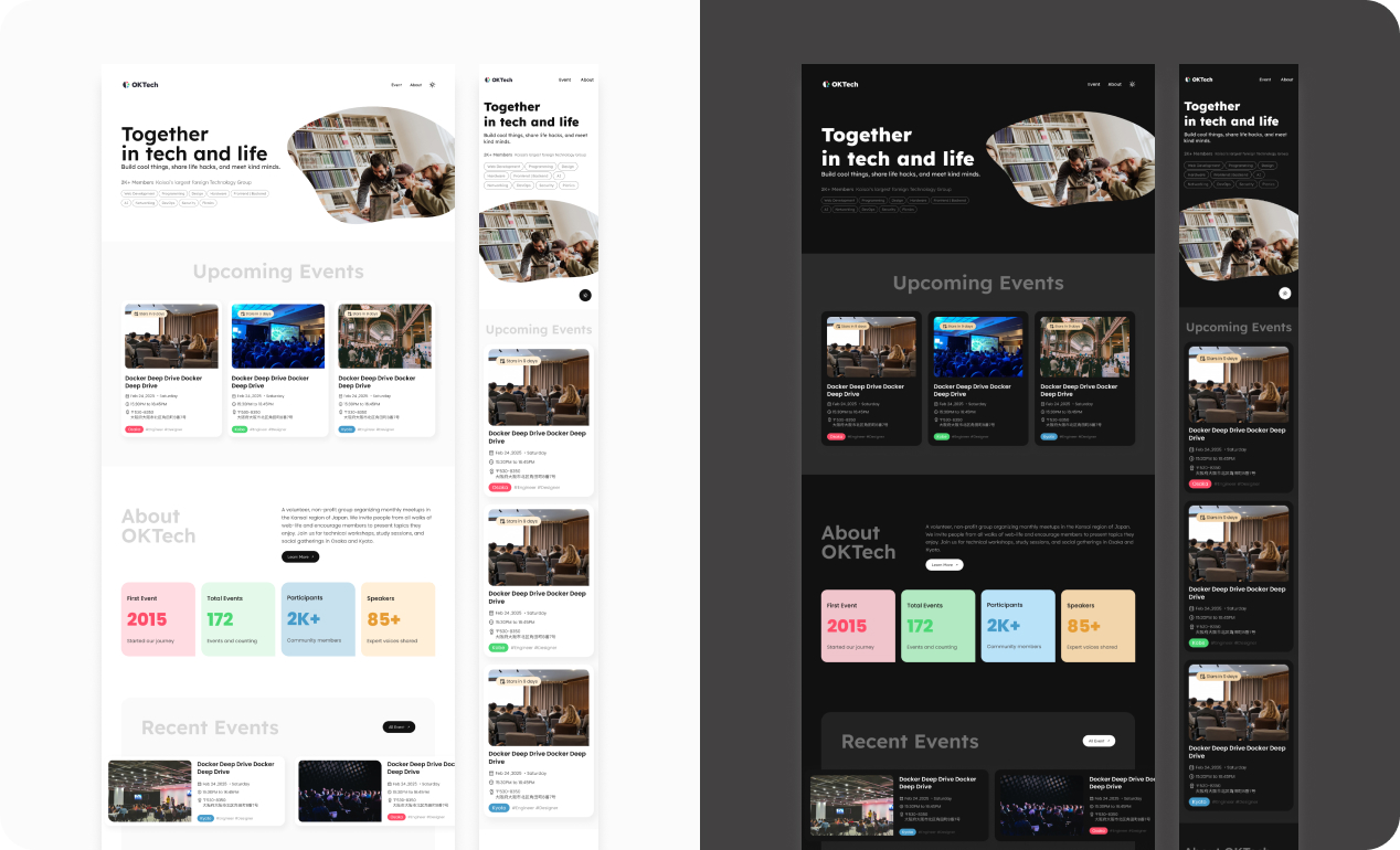 OK Tech is a volunteer-driven international community for designers and developers based in Kansai region. In late 2024, the team initiated a website redesign to improve clarity, strengthen identity, and increase awareness of its existence.This project was less about “designing pages” and more about structuring direction in ambiguity.